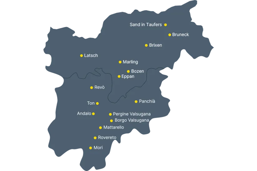 Mit 16 Filialen, die sich über ganz Trentino-Südtirol erstrecken, bieten wir ein flächendeckendes Netzwerk. Das bedeutet, dass wir immer in Ihrer Nähe sind und Ihre Wünsche sofort erfüllen können. Dank unserer großen LKW-Flotte können wir jeden gewünschten Artikel schnell nachliefern. An unseren Standorten erwartet Sie ein umfassendes Angebot an Baustoffen sowie ein Team von Beratern und Fachleuten, die Ihnen bei all Ihren Projekten zur Seite stehen. Und wenn Sie einmal nicht sofort das finden, wonach Sie suchen - lassen Sie es uns wissen. Wir bestellen dann in unseren Zentrallagern nach und liefern prompt - entweder an den für Sie nächstgelegenen Verkaufspunkt oder direkt auf die Baustelle.